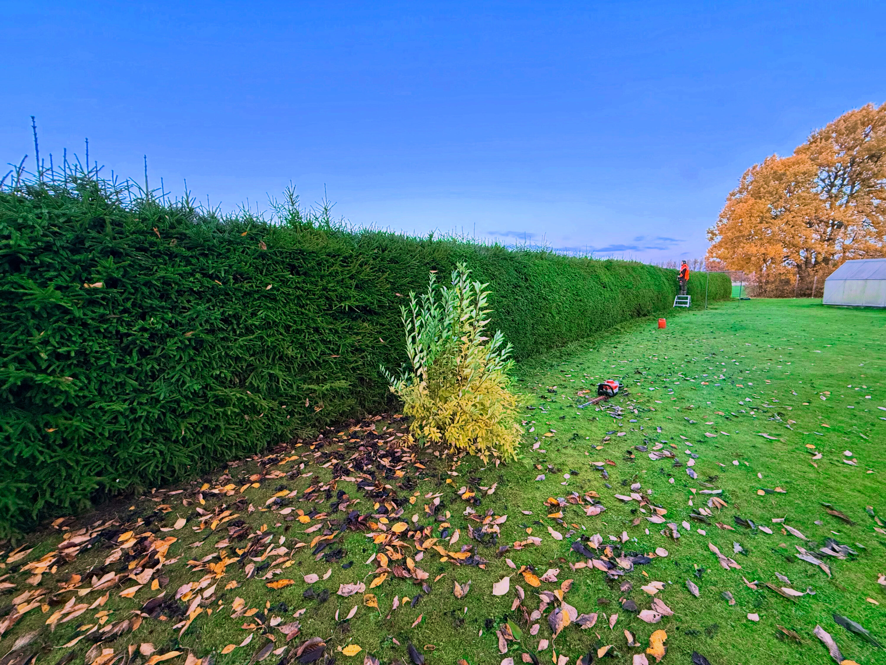 Idag ”kämpade” vi mot en gigantisk granhäck! Trädgårdsmästare Lidköping